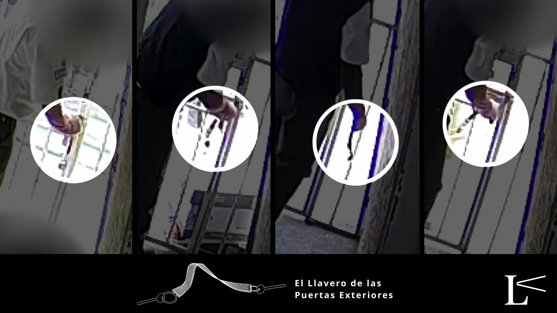 De acuerdo con las imágenes analizadas, en el transcurso del día se puede ver tanto a los agentes del INM como a los guardias de seguridad manejar las llaves para abrir y cerrar la puerta de la celda y la puerta de madera con la puerta metálica que estaba al lado de la habitación y conduce al estacionamiento del edificio.